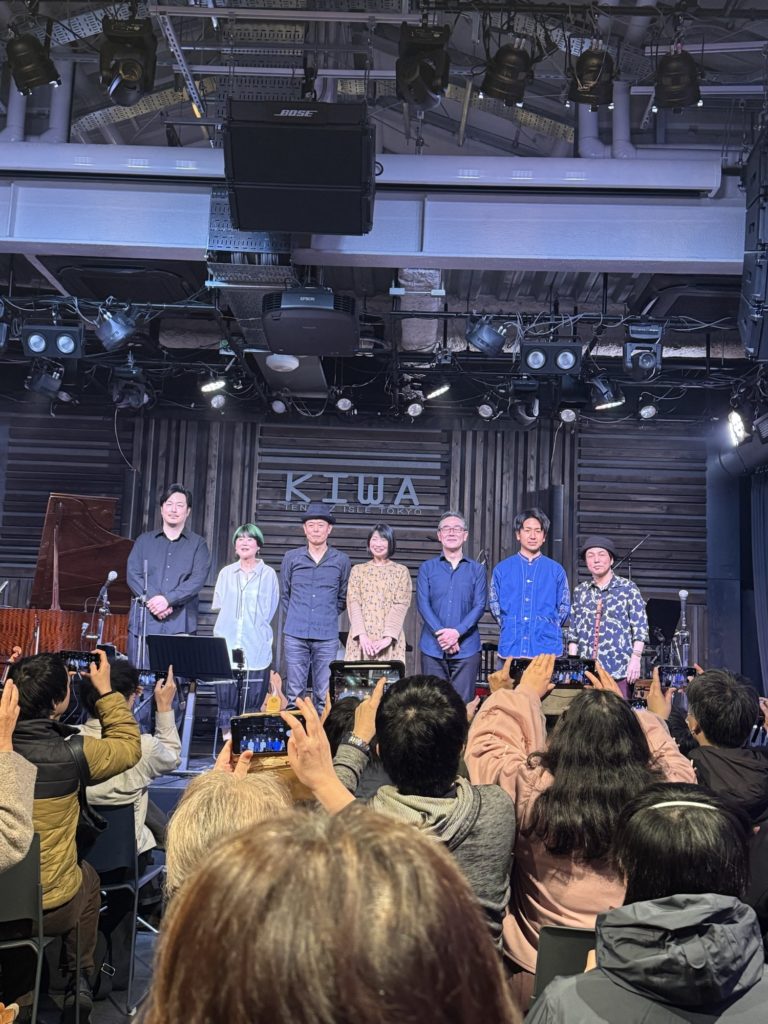 オオフジツボの三人に加えて、ピアノ、イーリャンパイプ/ホイッスル、ケーナ、パーカッションが入った大世帯から繰り出される音は圧巻で、聴き慣れた曲が何倍もの力をもって迫ってくる感じ。