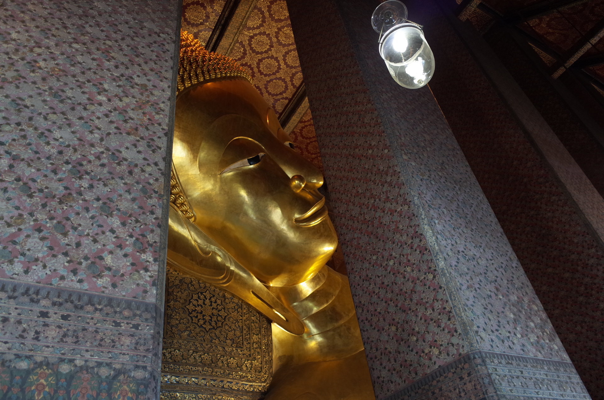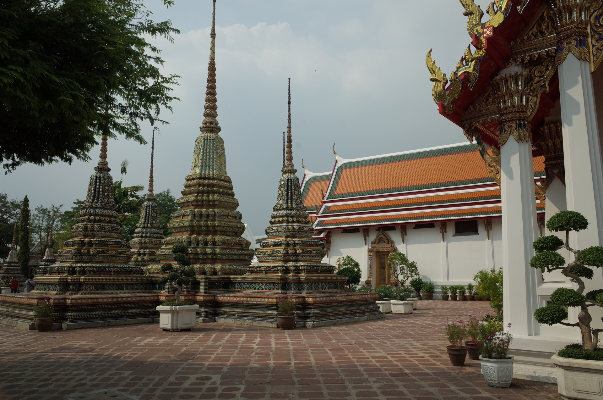 そこから渡船で対岸に渡り、ワット・ポーへ。川側から見る暁の寺とはためく黄色い旗がかっこいい。ワット・ポーの涅槃像は相変わらず金ピカで、もの凄い迫力だった。足の部分が修復中だったが足の指の指紋が無田であることに気づいたりして発見が多い。チケットには特別な半券がついていて、ペットボトルのお水と交換してくれる。飲料メーカーがスポンサーの「仏像をデザインに使わないで」というキャンペーンのようだった。