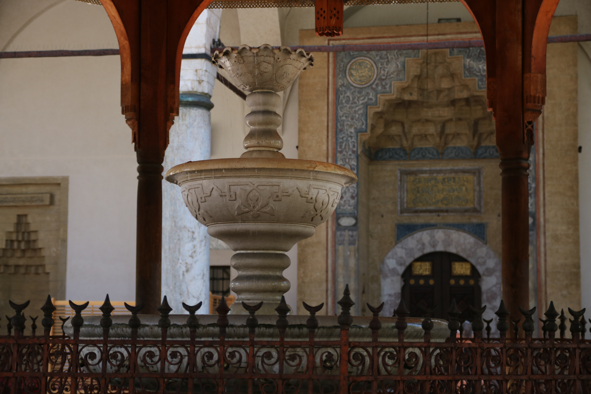 橋の西側、高台のほうをぶらぶら。シナンの弟子が作ったというモスクがある。その近くに「トルコ人の家」という見学施設が。トルコ人の生活様式を模した木造家屋で、靴を脱いで二階にあがるとカーペットの敷かれた広々とした居住空間。誰もおらずひっそりしていて、本当に誰かのお宅におじゃましているようだった。窓から川とミナレットが見え、風がよく通る。しばしまったり。