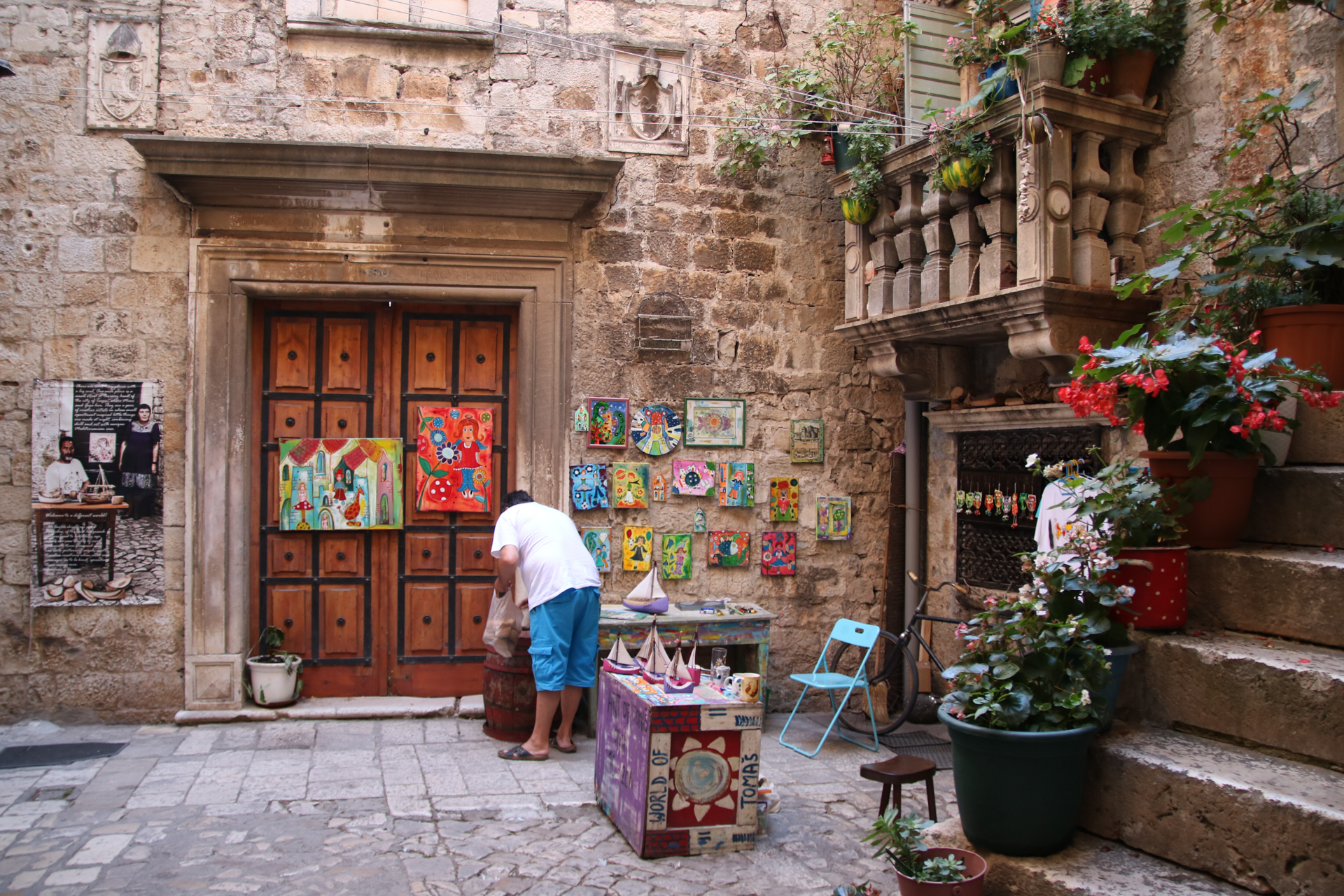 古都トロギールはスプリットよりこじんまりとしていて観光客も少なく、石畳の路地に誰もいない瞬間があったりする。中世はこんな感じだったのだろうか。木陰のカフェでビール。