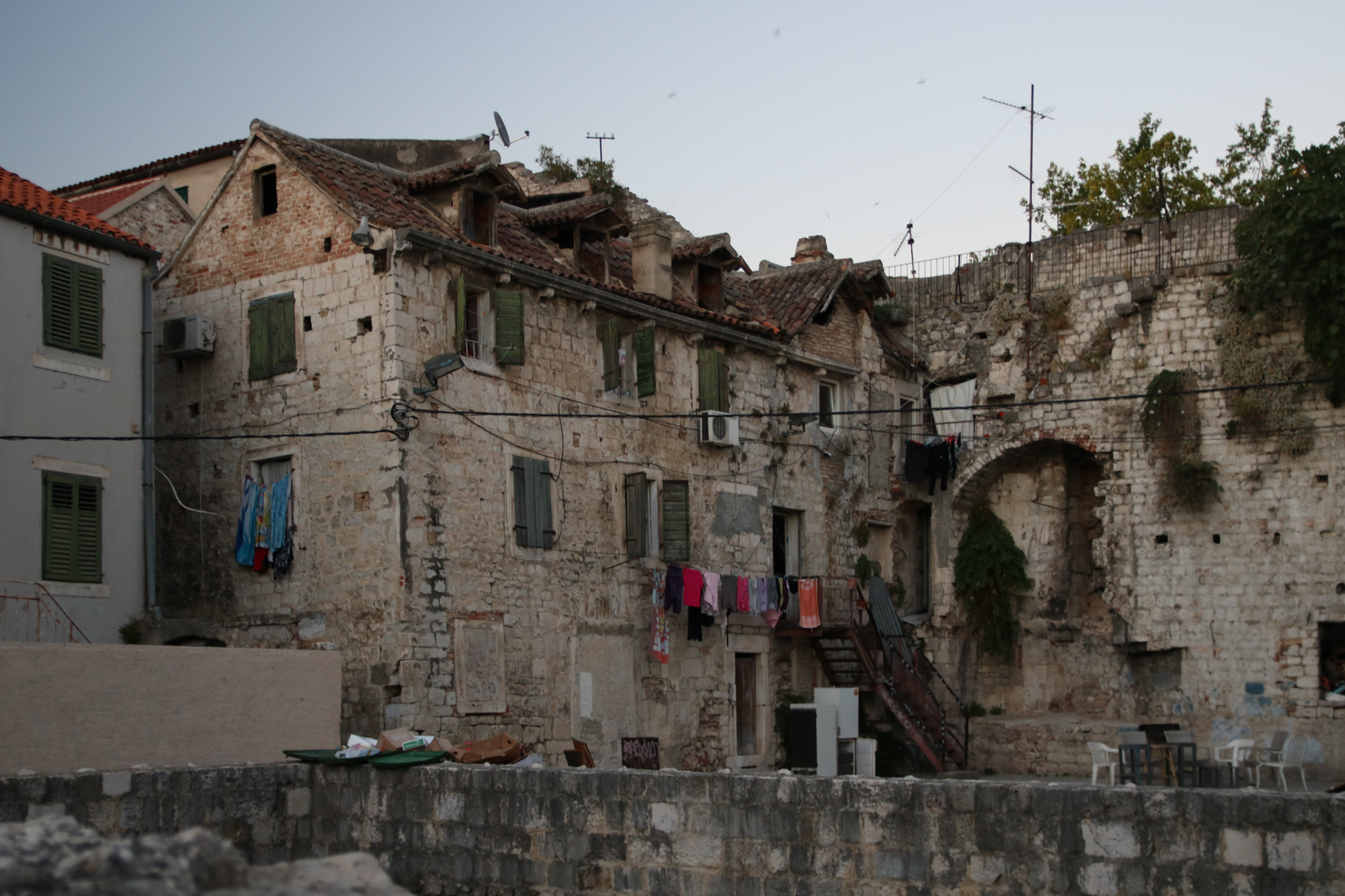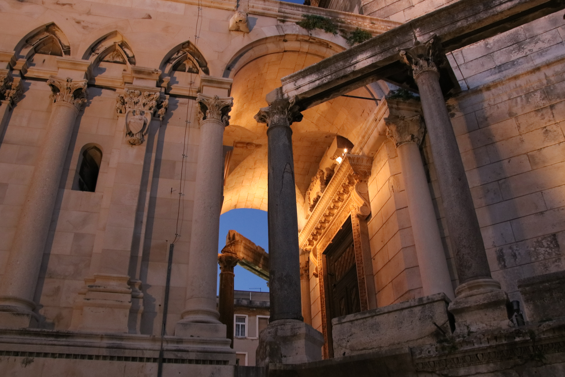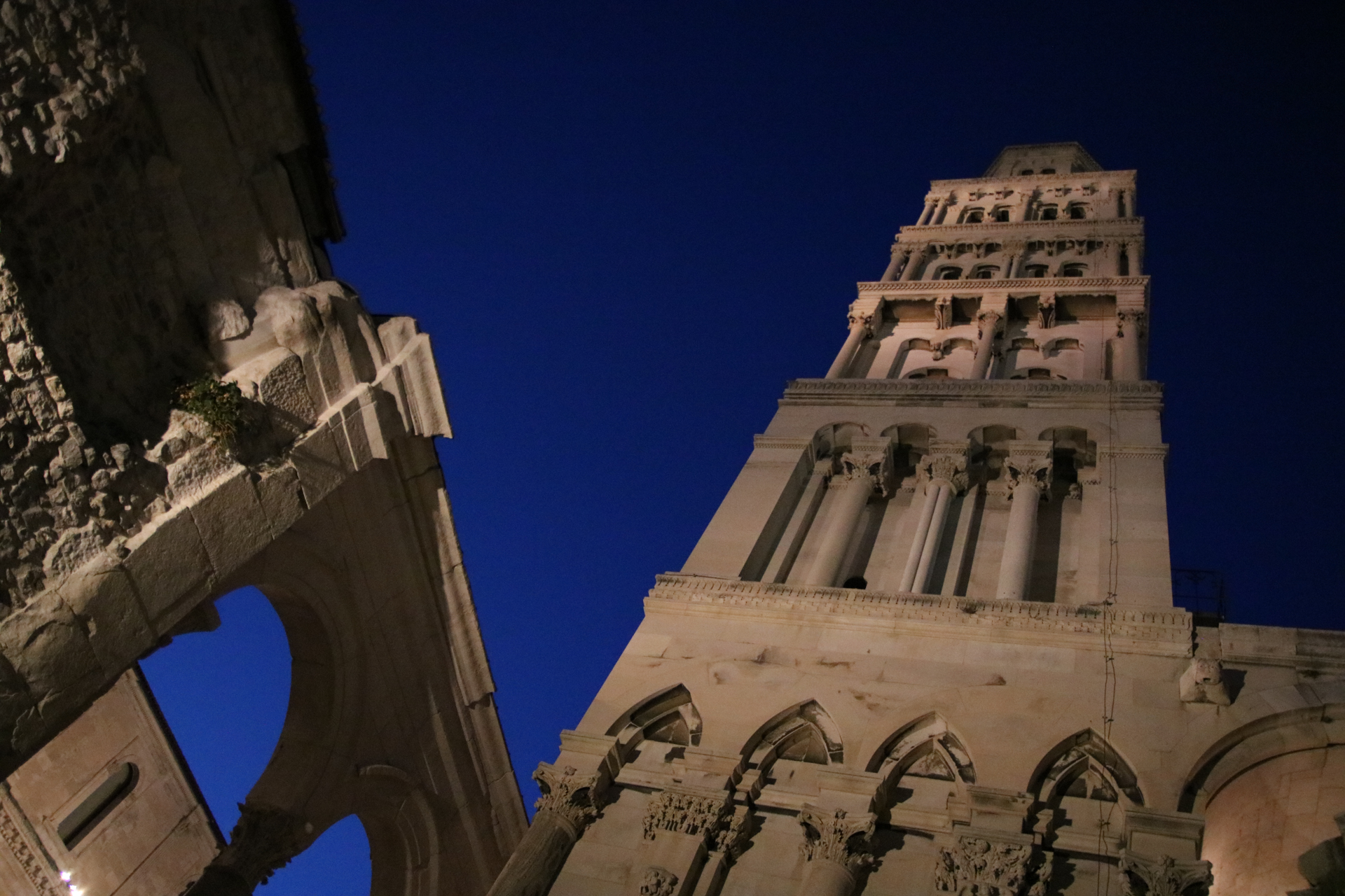 スプリットに戻り、夜の街をあてもなくぐるぐる。バザールがあり、脇道にそれてみるとローマ時代の遺跡がごっそりと残っている一角がある。水を買うのに迷路のような街を歩き回ってしまった。夜のスプリットは中世の面影がいっそう濃くなっているようで美しい。