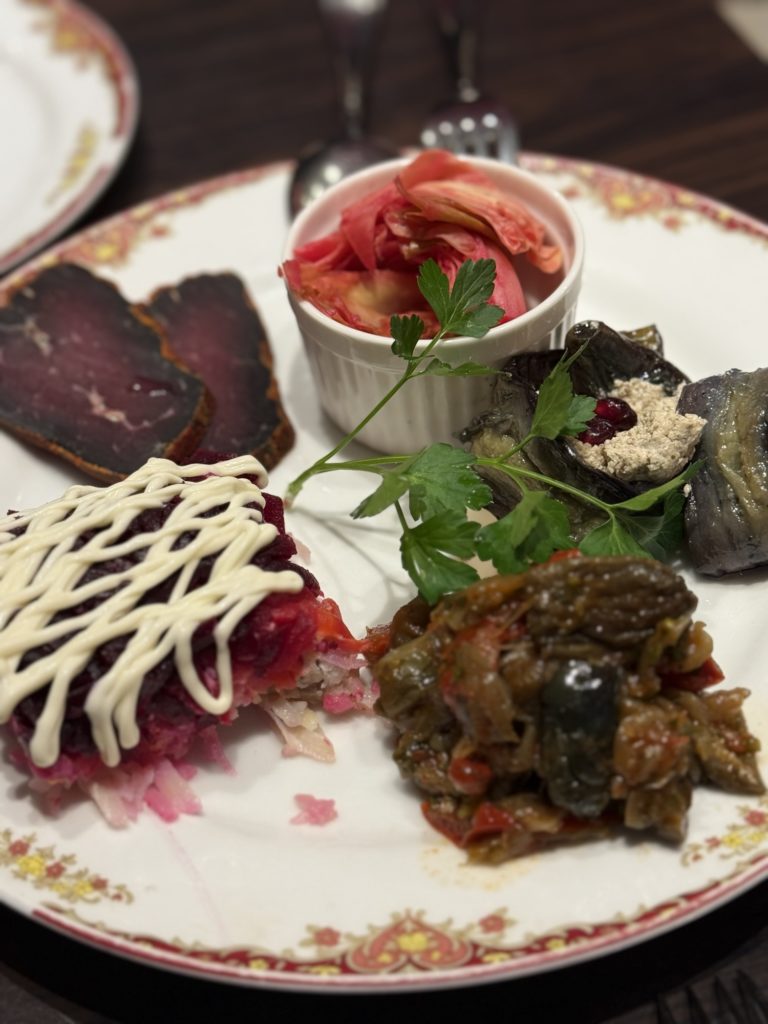 終演後はずっと行きたかったカフェ・ロシアさんでジョージア料理のコースを。前菜5品、ハチャプリ(チーズパン)とハルチョー(牛すじのスープ)、メインはタブク(グリルチキン半身!)、ヒンカリがないのが悲しくてペリメニを頼んだらお腹いっぱいになってしまった。大満足。