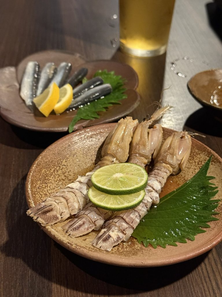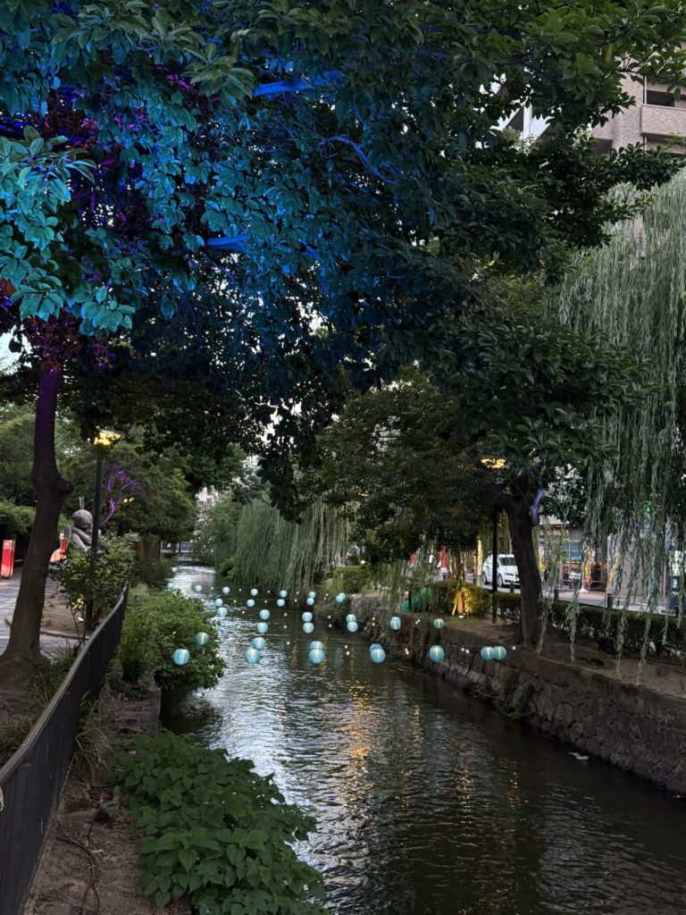駅前は工事中。軌道式沿いに歩き、ささやかにライトアップされた川沿いに建つ後楽ホテルへ。ひとやすみしてからおばんざいのお店でしゃこやらママカリをいただき、二軒目はスペインバルへ。本日も良い夜。