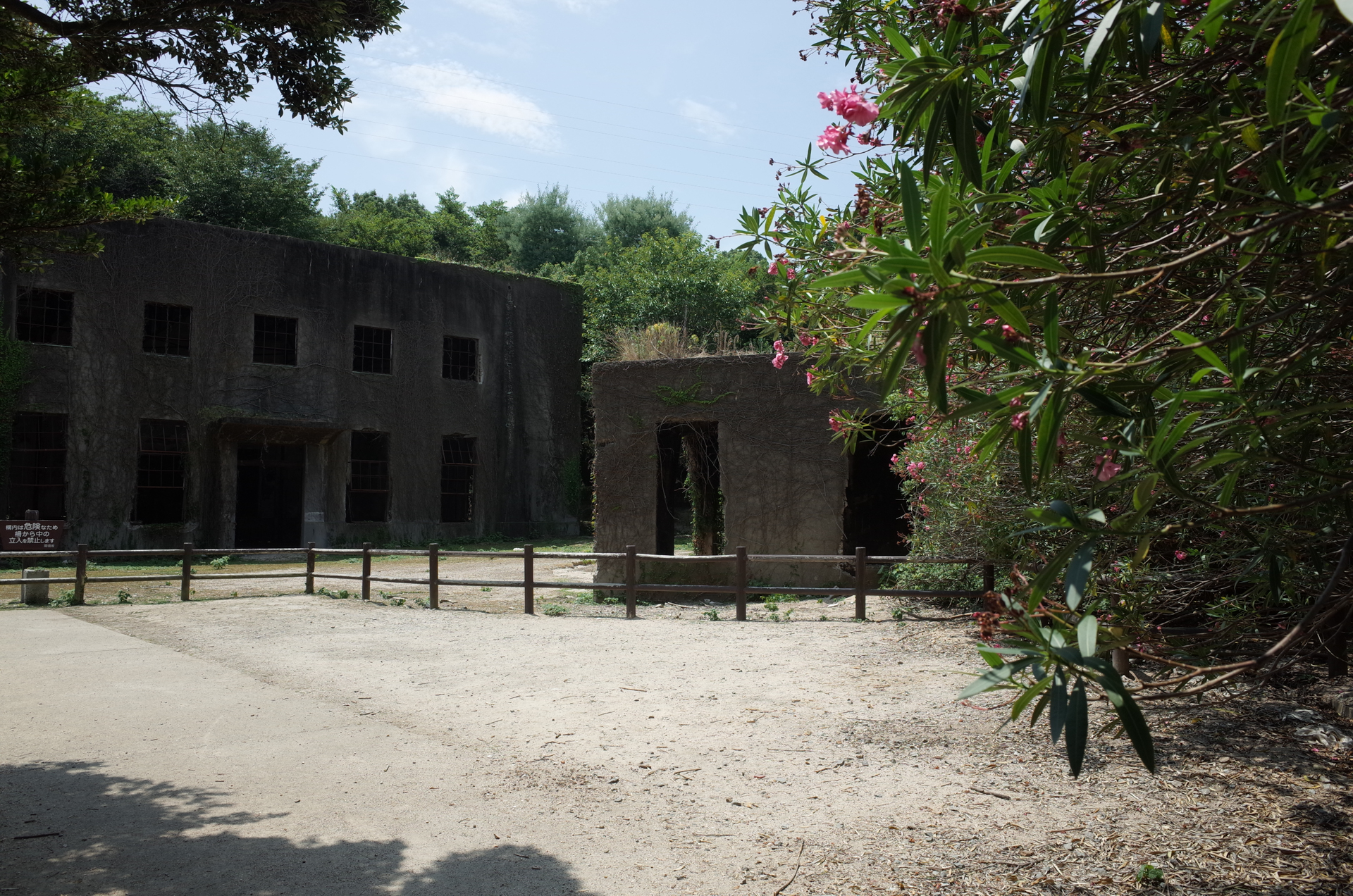 船を降りるとさっそくうさぎに迎えられる。野生化してるくせにちっとも人間を怖がらない。国民休暇村で電動自転車を借りて島を一周する。戦時中、毒ガスを開発していたとのことでガスタンクや発電所の遺跡があるのだが、どれも植物に飲み込まれていてなんとも禍々しい迫力がある。しかし気温は36度ほど。日焼け止めを塗っていたががっつり焼けてしまった。