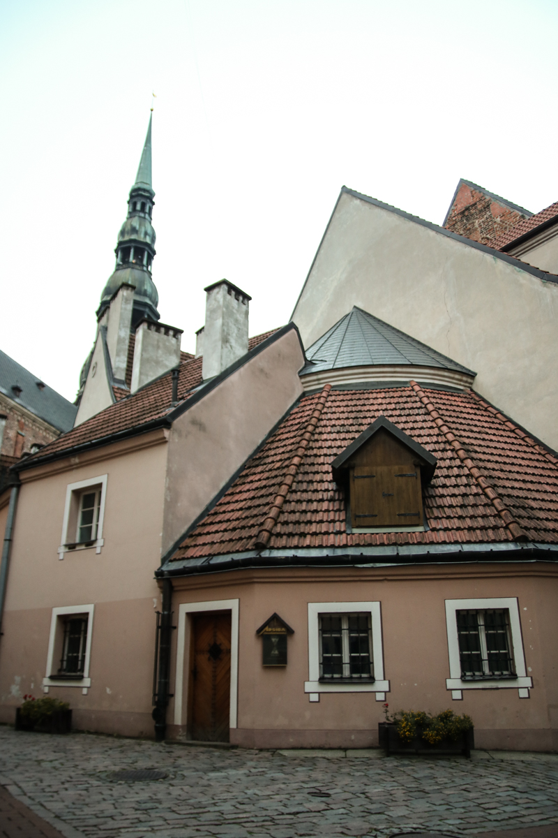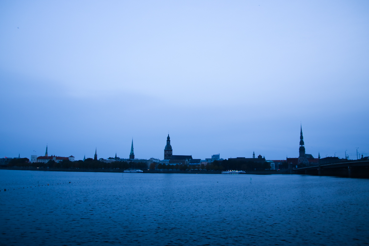 バルト三国のおもひで、ラトビア編その2。首都リガ。早朝、橋をわたって旧市街へ散歩にでかける。川向うの旧市街は尖塔が立ち並んでいて幻想的。