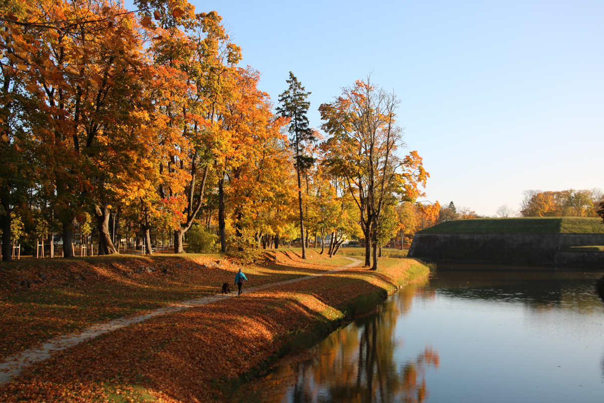 夕暮れのクッサーレ城を散歩。バルト三国ではこの円筒形+円錐の城塞をよく見かけるが、どこかでみたと思ったらムーミンの家だ。フィンランドはすぐそこだしね。紅葉が美しい。