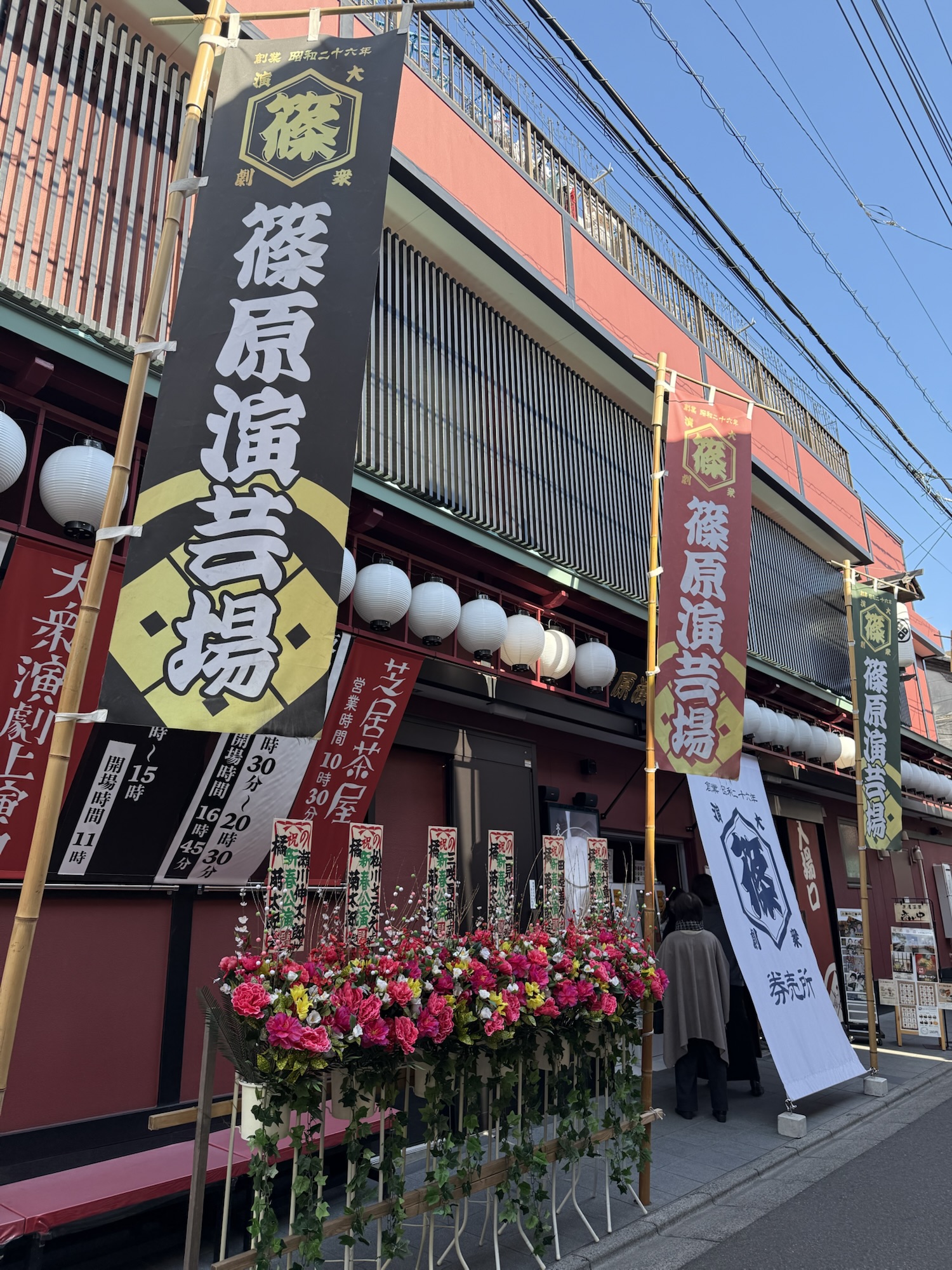ご近所さん夫妻と十条の篠原劇場へ。先日焼肉食べながら勢いでチケットを取ってしまったらまさかの花道前の桟敷席。橘劇団とてもおもしろかった。